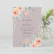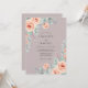 Este design apresenta rosas suaves em tons de pêssego e damasco aninhadas entre folhas de eucalipto verde-sage. Um fundo malva suave fornece um pano de fundo sofisticado e romântico para os elementos florais etéreos. Pequenos ramos de preenchimento de lavanda adicionam um toque de detalhe caprichoso à estética inspirada no vintage.