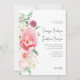 Este elegante e romântico convite para o casamento floral cor-de-rosa e branco apresenta flores cor-de-rosa e cor-de-rosa, eucalipto, verde e outros elementos florais e caligrafia escrita à na moda num fundo branco. Este convite é perfeito para o casal ter seu casamento em um local de casamento romântico, formal, elegante, moderno, chic, sofisticado, rústico, de moda ou ao ar livre.