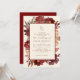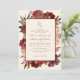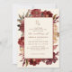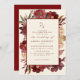 Este convite para o casamento floral Elegante Burgundy e vermelho apresenta os seus detalhes de casamento em letras modernas, definido num quadro oval de branco bege poeirento com flores aquáticas e folhagem botânica em tons de terra inspirados no deserto com tons de terra brilhantes, vermelhos, marrom e marfim com texto cor de cobre quente.toque de imagem vintage torna este convite floral antigo único.Um convite perfeito para o casamento vintage vermelho no verão, primavera e casamentos no inverno.