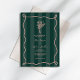 Tema de casamento com texto desenhado à mão, traçado cor-de-rosa, com linha botânica floral cor-de-rosa sobre fundo estriado verde esmeralda.