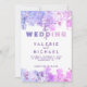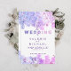Design de convite para casamento artístico moderno, com um fundo de abstrato em tons roxos e cor-de-rosa, com tipografia angustiada moderna e ousada.