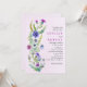 Vidro de flor silvestre, floral, terra púrpura, rosa, convite para casamento. Este convite de casamento floral primavera apresenta um arranjo de aquarela de flores silvestres em tons de azul e roxo, colocados contra um fundo púrpura cativante e rosa. As delicadas pétalas e folhas verdes azuladas das flores silvestres adicionam um toque de beleza natural à design. Ao virar o convite, você vai descobrir as iniciais do casal elegantemente exibidas dentro de uma encantadora estrutura redonda adornada com flores silvestres mais deliciosas. É um convite encantador que captura perfeitamente a essência de uma celebração romântica e caprichosa de casamento.