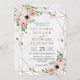 Crie seus próprios convites de casamento ao estilo moderno e sofisticado com padrão geométrico rosa-ouro e ilustração floral cor-de-água rosa em um fundo texturizado de mármore.