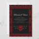 O Design apresenta um amortecedor vermelho e preto e um rosa vermelho e sangrento. A fonte está em uma delicada e quase branca sombra de cinzas que contrasta com o fundo escuro. Na parte de trás está um damasco preto e vermelho e as iniciais do casal de casamento Abaixo é um rosa vermelho sangrando, dando ao cartão um toque misterioso e ligeiramente escuro. A rosa simboliza o amor e a paixão enquanto o sangue representa a profundidade das emoções. No geral, o cartão exude um certo drama e intensidade que imediatamente atrai a atenção do receptor. É perfeito para casais que procuram um convite de casamento não convencional e único. Muito fácil de personalizar clicando no botão personalizar.