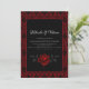 O Design apresenta um amortecedor vermelho e preto e um rosa vermelho e sangrento. A fonte está em uma delicada e quase branca sombra de cinzas que contrasta com o fundo escuro. Abaixo está um rosa vermelho sangrando, dando ao cartão um toque misterioso e ligeiramente escuro. A rosa simboliza o amor e a paixão enquanto o sangue representa a profundidade das emoções. No geral, o cartão exude um certo drama e intensidade que imediatamente atrai a atenção do receptor. É perfeito para casais que procuram um convite de casamento não convencional e único. Muito fácil de personalizar clicando no botão personalizar.