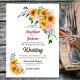 Convide seus amigos e entes queridos para o seu casamento com este elegante convite com girassóis vibrantes, rosas cor-de-rosa delicadas, e torres de galhos de eucalipto para ajudar a compartilhar sua alegria no seu dia especial.