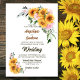 Convide seus amigos e entes queridos para o seu casamento com este elegante convite com girassóis vibrantes, rosas cor-de-rosa delicadas, e torres de galhos de eucalipto para ajudar a compartilhar sua alegria no seu dia especial.