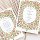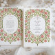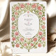 Celebre sua história de amor com este convite romântico ao casamento, inspirado pela elegância graciosa do período Art Nouveau. Esta design apresenta uma bela e intrincada armação de vinhas entrelaçadas, fundidas em um verde suave e suave. Dentro das vinhas estão rosas cor-de-água rosa estilizados e folhas charmosas, em forma de coração, em verde-muda, criando um efeito de crellis no jardim branco. Um coração cor-de-rosa solteiro no topo adiciona um toque doce e simbólico. A delicada indústria de aquarela dá a este convite uma sensação macia e pintada à mão. Dentro nesta bela fronteira floral, seus detalhes de casamento são apresentados em uma tipografia clássica e refinada, que é totalmente personalizável. É a escolha perfeita para um conto de fadas, jardim, ou casamento romântico com temas de safra.
