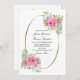 Um convite de casamento floral cor-de-rosa elegante com uma fronteira dourada.