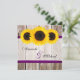 Um convite elegante do casamento do girassol. Caracterizando a madeira rústica do celeiro com a fita roxa do falso e os girassóis amarelos. Aperfeiçoe para um casamento do país, o casamento do girassol, o casamento do celeiro e o mais! O design é ilustrações/gráficos impressos - FITA NAO REAL.