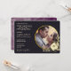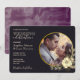 Convite de casamento roxo dourado e preto moderno, elegante, boho, chique com foto e flores douradas românticas temperamental.