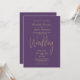Um convite de casamento de lavanda minimalista elegante com texto dourado.