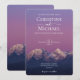 Casamento roxo roxo de montanhas de neve roxa. Design de casamento romântico com uma fotografia de paisagem de neve coberta de montanhas rochosas. As montanhas mal são tocadas pelo brilho laranja macio do sol de fixação. O céu acima da majestosa cordilheira é colorido em tons naturais tão espantosos de rosa e roxo. Um gradiente leve e arejado de cores lentamente mudando de púrpura para índigo profundo e azul. Todas as informações sobre o produto podem ser totalmente personalizadas clicando em "Personalizar este modelo". Se você quiser alterar o tamanho da fonte ou mover algumas coisas ao seu redor, você pode alcançar isso clicando em "Editar usando a ferramenta design". Você sempre pode me contatar sobre o design clicando em "mensagem" abaixo.