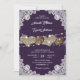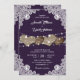 Esses convites românticos de casamento, com corações de burlap, com fundo de burlap e de rendas enfeitados com luzes de cordas são perfeitos para convidar seus convidados para a sua festa de casamento rústica/barnê roxa.