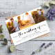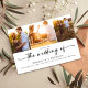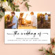 Convide amigos e familiares para se juntarem a vocês para as comemorações do casamento com esta design de fotos moderna que inclui um lugar atrás para um código QR que lhes permite RSVP online através do seu website de casamento. Não são necessárias placas de resposta ou de gabinete, ajudando você a economizar dinheiro em papelaria.