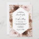Este Convite para Casamento Floral de Boho Pampas, Rosa Dusty, está a ser convertido numa paleta de cor suave, cor-de-rosa poeirenta, terracota, champanhe e tons de terra de marfim. Apresenta belos rosas de aquarelas e florais detalhados com grama-pampas e palmas secas em fundo de pincel. Esta bela paleta de cores é perfeita para primavera, verão ou casamento outono. O convite reverte para um RSVP de código QR. Personalize com todos os detalhes do seu casamento.