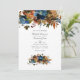 Trendy watercolor floral adiou o anúncio de casamento em acentos de laranja-marrom-gengibre e marinho azul-indigo. Ideal para qualquer tema ou casamento de jardim. O código QR no verso direciona para o seu local de casamento onde o pessoas pode aprender mais e rsvp.