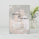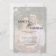 Este convite de casamento elegante e moderno apresenta um roteiro de caligrafia único, emparelhado com na moda. O esquema de cores preto e branco é perfeito para qualquer evento, formal ou casual. Adicione sua foto à parte traseira da placa para obter um detalhe especial e personalizado.