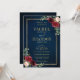 Marinho vermelho-escuro com cruz de cor-de-água, modelo de convite floral cor-de-rosa para casamento, com Dourada armação e ouro com folhagem botânica verde e folhas de eucalipto em fundo azul-marinho. Esta design fácil de personalizar pode combinar facilmente com as cores do casamento, estilos e temas e é uma escolha perfeita para o meio do outono ou casamentos no inverno. Você pode encontrar mais designs correspondentes na minha loja ou entrar em contato comigo se precisar de ajuda na personalização do design.