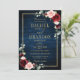 Marinho vermelho-escuro com cruz de cor-de-água, modelo de convite floral cor-de-rosa para casamento, com Dourada armação e ouro com folhagem botânica verde e folhas de eucalipto em fundo azul-marinho. Esta design fácil de personalizar pode combinar facilmente com as cores do casamento, estilos e temas e é uma escolha perfeita para o meio do outono ou casamentos no inverno. Você pode encontrar mais designs correspondentes na minha loja ou entrar em contato comigo se precisar de ajuda na personalização do design.