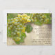 Cartão de Convite em Papel de 5" x 7", com um design de ilustração pintado à mão, ideal para casamentos no estilo do vinho ao ar livre no Verão, outono ou outono, no estilo do vinho ao ar livre, num local de adega ou de fazenda. O pano de fundo é uma pedra bonita, antiga, envelhecida e angustiada, enrolada com uvas de vinho branco, variedade Chardonnay. Estes estão pendurados na vinha. Tradicional com um toque moderno. Elegante o suficiente para a cerimônia de casamento mais formal. A imagem foi pintada manualmente em mídia mista por Audrey Jeanne.