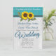Madeira Rústica Teal, Ouro Girassol encantador e moderno Convite para Casamento, Perfeito para os casamentos deste ano