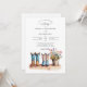 Uma ilustração encantadora da aquarela de dois pares de botas coloridas do país ocidental do denim — dele e dela —, aliadas a um pote rústico de flores silvestres, decora lindamente este convite com um esquema de cores alegre e brilhante. Perfeito para um país, celeiro ou tema de casamento rústico, esta design captura o calor e a simplicidade de uma celebração ocidental, estabelecendo o tom para um dia inesquecível no campo.
