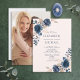 Convites Casamento Russo de Foto Floral Azul, Marinho Rosa