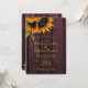 Elegante verão chic ou na moda de casamento outono de convite modelo em madeira de burlu escuro apresentando um belo buquê de girassóis e um falso roteiro de caligrafia em ouro. ++++++++++++++++++++++ O convite é adequado para casamentos elegantes de Verão ou outono no país russo.