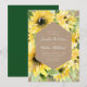 Nossos elegantes convites para casamento de Watercolor Sunflower mostram seus detalhes de casamento enquadrados por girassóis amarelos, folhas verdes e folhagem exuberantes contra um fundo de papel kraft. O convite inverte-se para um fundo verde sólido. Os convites para o casamento de girassol são perfeitos para o verão e casamentos outono!