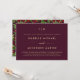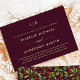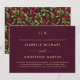 Este convite para o casamento de Natal rústico apresenta um lindo padrão botânico de amora de água nas costas, e uma típica frente de burgundy marsala com texto a cores douradas. Um simples monograma fica no topo da design, e o texto inclui um toque de bonito letra de escrita caligráfica. Veja esta coleção de feriados de chic para coordenar envelopes e opções de cores adicionais.