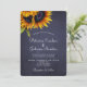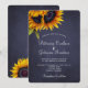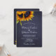 Elegante verão chic ou modelo de na moda de convite para casamento outono na meia-noite escura quadro azul de marinho apresentando um belo buquê de girassóis e um roteiro de caligrafia branca. ++++++++++++++++++++++ O convite é adequado para casamentos elegantes de Verão ou outono no país russo.