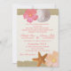 Convite para o casamento na praia com uma flare vintage e o olhar rústico da burlap, todos acentuados com hibisco, dólares de areia e peixe estrelado, personalize texto e fontes para se adequar ao seu estilo.