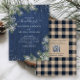 Crie o convite perfeito para o casamento com esta design de terra maravilhosa russa do inverno. Apresentando madeira marinho azul, flocos de neve com brilho prateado caindo em abeto verde de abeto, com tipografia manuscrita e luzes de cordas brilhantes, a parte de trás do cartão apresenta uma textura de xadrez de búfalo bronzeado e marinho com RSVP de Código QR e Detalhes de Casamento. Copyright Elegant Invites, todos os direitos reservados.