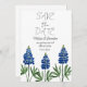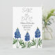 Bluebonnets, Casamento floral azul-aquarela, salve a data. Flores do Texas. Trabalho de arte pintada à mão pela artista Monika Howarth. Você pode personalizá-lo com seus detalhes.