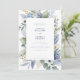 Celebre seu dia especial com um design que equilibra perfeitamente elegância clássica e encanto moderno. Este cartão floral azul empoeirado apresenta designs florais de cor aquosa delicados e sotaques verdes esmagadores, ideais para eventos de temas boho ou rústicos. Perfeito para comemorações de primavera e verão, a trabalho de arte de inspiração botânica acrescenta um eterno e toque sofisticado. Impresso em materiais premium, esta placa foi projetada para impressionar seus convidados e, ao mesmo tempo, refletir seu estilo exclusivo.