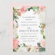 Rosas rosa e flores brancas brilhantes de hydrangea estão aninhadas em folhas verdes e macios para criar uma elegante fronteira floral em torno do seu convite para o casamento. A fronteira russa abraça o texto. O dorso é cor-de-rosa pincelado com um simples buquê floral de coordenação. Este item é parte da Coleção de Casamentos Florais Blush Pink e White.