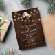 Modelo de convite simples para na moda de casamento no inverno simples e elegante em madeira de celeiro castanho-escuro, apresentando um pequeno buquê de flores brancas, rochas ou luzes cintilantes e um roteiro de tipografia branco e dourado. Preencha suas informações nos pontos, Você pode optar por personalizá-las mudando ainda mais as fontes e as cores das letras. +++++++++++++++ O convite é adequado para o país russo chic elegante do inverno | estância de montanha | casamentos de fazendas.