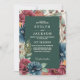 Este elegante convite de casamento rústico apresenta cor d'água laranja queimada e folhas de terracota, natas e marrom flores, e belos rosas de cor ferrugem em um terraço | fundo verde esmeralda. A parte de trás do inclui texto para adicionar os detalhes do seu casamento. Encontre itens correspondentes na Coleção de Casamentos de Laranja Russo Queimada.