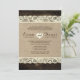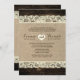 Este convite de casamento tem um limite de madeira e renda, armando um fundo de burlap. Perfeito para um casamento de vintage, country ou temático. Adicione sua própria foto de noivado na parte traseira para personalizar totalmente o cartão.