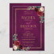 Marinho vermelho-escuro com cruz de cor-de-água, modelo de convite floral cor-de-rosa para casamento, com Dourada armação e ouro com folhagem botânica verde e folhas de eucalipto em fundo azul-marinho. Esta design fácil de personalizar pode combinar facilmente com as cores do casamento, estilos e temas e é uma escolha perfeita para o meio do outono ou casamentos no inverno. Você pode encontrar mais designs correspondentes na minha loja ou entrar em contato comigo se precisar de ajuda na personalização do design.