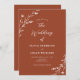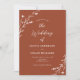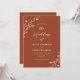 Este belo convite de casamento rústico apresenta um belo fundo de terracota com flores silvestres desenhadas à mão branca e tipografia elegante. É a design perfeita para um casamento rústico, mas elegante! Consulte a coleção para coordenar itens.