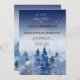 Rustic Blue Pine Misty Forest Wedding Invitation captura a magia sombria de uma noite acesa com luz refletora silhuetas de pínus, névoa e um voo de pássaros à luz da lua.Sombras de sotaque azul as árvores, gotículas de prata encontram seu caminho através da cena pintada de aquarela. O texto nítido para o nome da noiva e do noivo e as informações do local são todos editáveis, basta usar a opção PERSONALIZE para torná-lo seu. Estes convites românticos revertem para uma cena de pinho nebuloso para combinar com a frente. Você encontrará este convite, assim como outras variações, papel de carta de casamento e acessórios em nossa COLEÇÃO DE CASAMENTO FLORESTAL RUSTIÇA DE PINOS AZUIS em nossa loja. Mande-me uma mensagem para necessidades e variações especiais. Desenhada pela artista Papel de carta do Casamento Nancy Lambert.