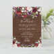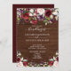 Convites Casamento Rustic Burgundy Floral Wood Script