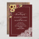Convites Casamento Rustic Burgundy Sunflower Wood Script
