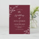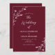 Este belo convite de casamento rústico apresenta um belo fundo burgundy com flores brancas desenhadas à mão e uma tipografia elegante. É a design perfeita para um casamento rústico, mas elegante! Consulte a coleção para coordenar itens.