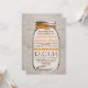 Bonito convite para casamento no país rustico com um frasco de pedras desenhado à mão e arco de fio laranja ao seu redor. O fundo da burlap é um design impresso no papel - não um tecido real da burlap. Entre em contato comigo se precisar de ajuda para personalizar ou tiver uma solicitação de cor personalizada.