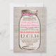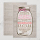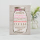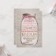 Bonito convite para casamento no país rustico com um frasco de mason desenhado pela mão e um arco de fio rosa ao seu redor. O fundo da burlap é um design impresso no papel - não um tecido real da burlap. Entre em contato comigo se precisar de ajuda para personalizar ou tiver uma solicitação de cor personalizada.