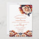 Celebrar a união de duas almas com a elegância eterno de um convite de casamento para rosas florais, laranja e azul marinho queimados. Um casamento de matizes ricos e quentes e de delicados florescimentos, este convite dá o tom para uma celebração que combina a sofisticação clássica com um romance vibrante. Imaginem um fundo azul marinho profundo, reminiscente do céu noturno estrelado, enfeitado com padrões florais complexos em tons laranja queimados. Os rosas, no florescimento do cheio, em cascata graciosamente através do convite, simbolizando amor, paixão e novos começos! Personalize-o com todos os seus detalhes e não se esqueça de mudar as iniciais no verso!
