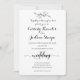 O escrevendo de caligrafia preta de fonte invertida contra o white paper nítido destaca este pacote de convites para casamento rústico.